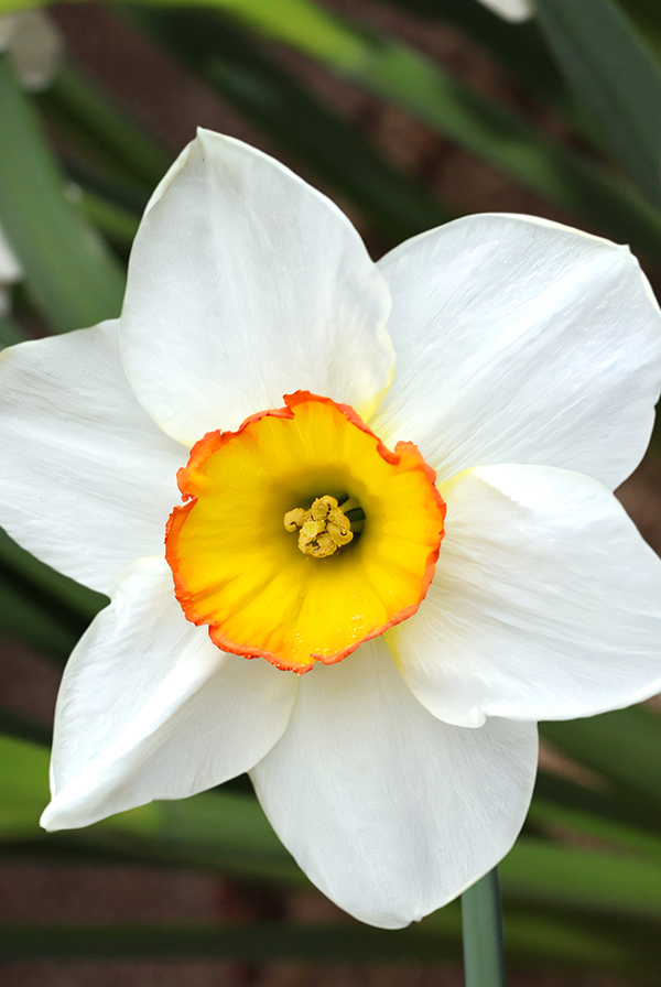 Удивительный в своей красоте цветок, который радует зеленью листвы и изящностью цветов. Цветки отличаются ажурными и утонченными лепестками, представленными в сливочном оттенке. Коронка цветка желтая, а ее край – ярко-оранжевый.