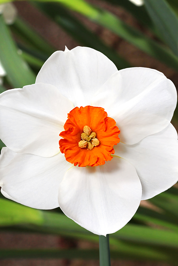 Сам сорт представляет собой очень гладкие белые лепестки с плотной текстурой и короткой, широкой оранжево-красной коронкой. Сорт отлично подходит для срезки и формирования цветочных композиций.