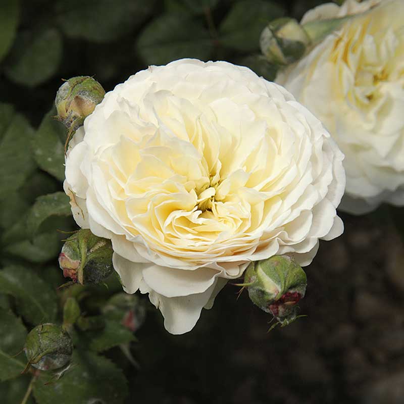 Роза сорта Транквилити отличается совершенством и прекрасным цветением. Термин переводится как «спокойствие». Средняя высота – 120-140 см при ширине от 90 до 100 см. Основной окрас листвы светло-зеленый. Роза не требует подвязки, потому что имеет свои крепкие ветви. Цветок отличается обильным цветением красивыми цветочными кистями. Доминирующий окрас – белый, с присутствием сливочных тонов. Диаметр махрового бутона – 8-10 см, а в кистях можно увидеть от 3 до 5 цветков. Аромат имеет слабую интенсивность и напоминает спелые яблоки.