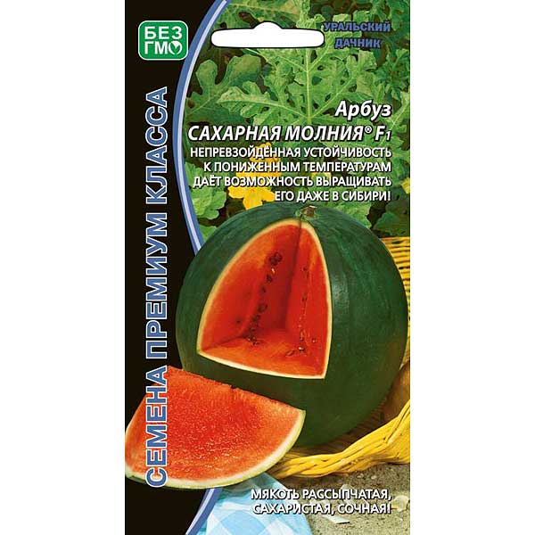 Великолепный ультраранний гибрид, с лёгкостью вызревает в средней полосе России. Растение короткоплетистое, длина главной плети не превышает 1,8 м. Лист мелкий, сильнорассечённый, с узкими долями. Плод шаровидный, чёрно-зелёный, со скрытым рисунком, массой 1,7-2,3 кг. Кора очень тонкая. Алая «медовая» мякоть нежная, сахаристая, сочная, очень сладкая и ароматная.