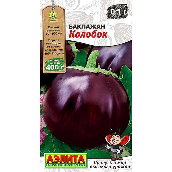 Сорт с крупными плодами необычной формы. Первый урожай снимают на 105-115 день от всходов. Кусты мощные, высотой до 1 м, нуждаются в подвязке. Плоды средней массой 400 г, при хорошей агротехнике вес отдельных баклажанов достигает 700 г и более. Мякоть белая, нежная, без горечи, с мелкими семенами, отличного вкуса. Подходит для приготовления икры. Благодаря размеру и шаровидной форме плоды можно использовать как горшочки для запекания мяса и овощей. Средняя урожайность 6-7 кг/м2.