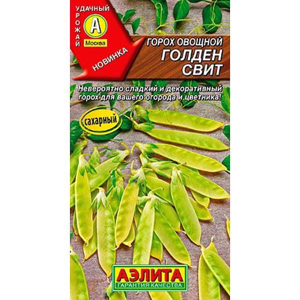 Уникальный сахарный сорт овощного гороха. Растение очень обильно цветет ярко-фиолетовыми цветками, а спустя 65-70 дней от всходов можно лакомиться первыми очень сладкими золотисто-желтыми стручками. Бобы-лопатки без пергаментного слоя. Прекрасно подходят для употребления в свежем виде, жарки и приготовления на пару. Куст высокий (140-180 см) и очень эффектный – украсит огород и цветник.