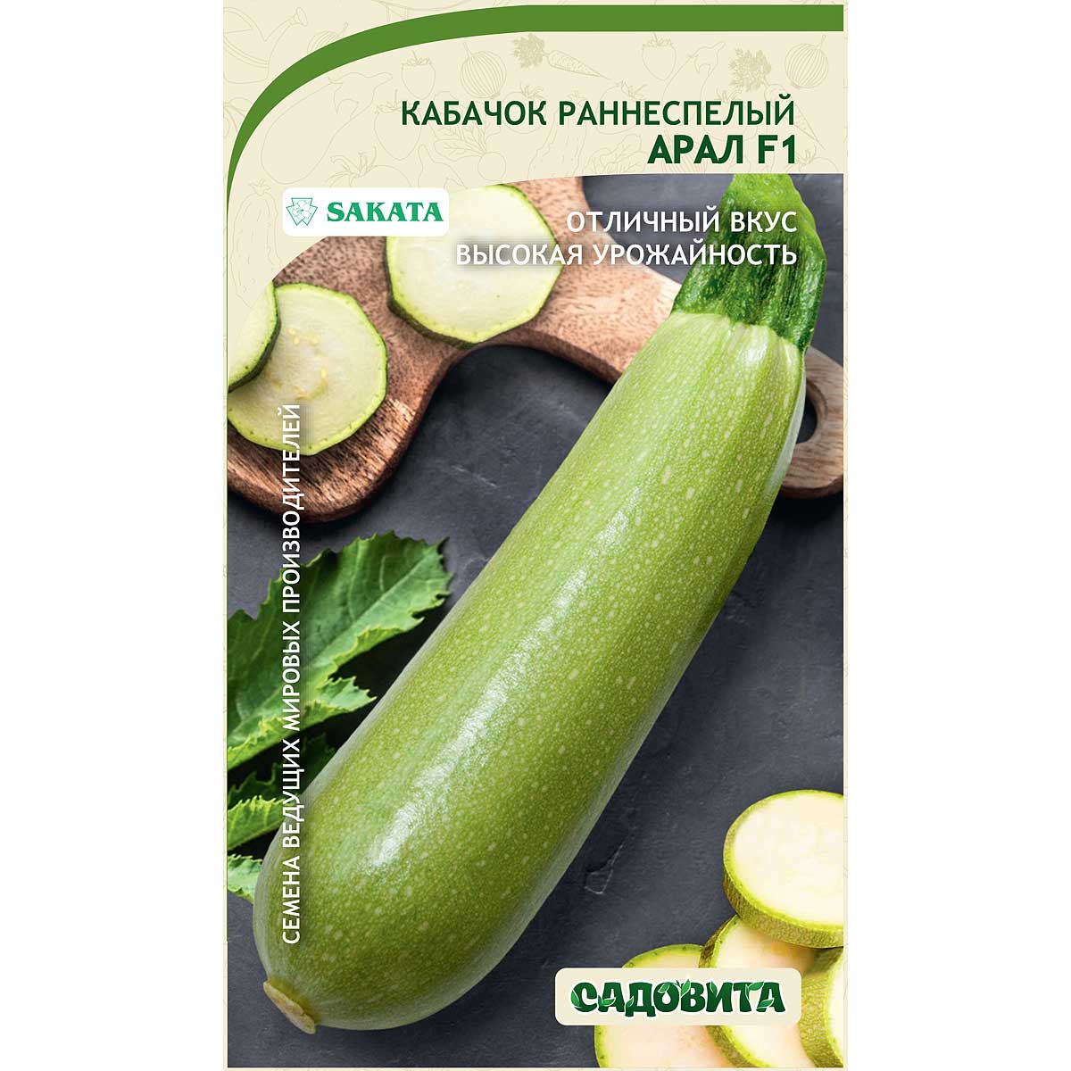 Очень ранний (30 дней от всходов до первого сбора плодов) гибрид. Растение полуплетистое. Плоды в технической спелости цилиндрические, слаборебристые, светло-зеленые, длиной 12-15 см, диаметром 4-6 см, массой 0,5-0,8 кг. Мякоть плотная, нежная, с отличным вкусом. Гибрид устойчив к основным заболеваниям кабачков. Урожайность до 10 кг/м². Плоды употребляют в вареном, тушеном и жареном виде, а также свежими (молодые завязи) в салатах. Из них получается аппетитное консервированное ассорти. Зрелые крупные плоды хранятся до 4 месяцев.
