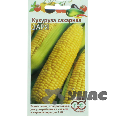 Раннеспелый (70-97 дней от всходов до технической спелости) сорт. Посев в открытый грунт в третьей декаде мая по схеме 45х45 см на глубину 2,0-2,5 см. Растение низкорослое, высота главного стебля 125-170, число листьев 10-14, надземных узлов 10, початков на одном растении 1. Початок цилиндрической формы, мелкий, длиной 16-20 см, диаметром 3,8-4,5 см, массой 150 г. Стержень белый. Зерно желтое, среднее, слабоудлиненное. Вкусовые качества хорошие. Среднеустойчив к заболеваниям. Сорт характеризуется холодостойкостью. Рекомендован для потребления в свежем и вареном виде. Урожайность 0,7-2,0 кг/м2.