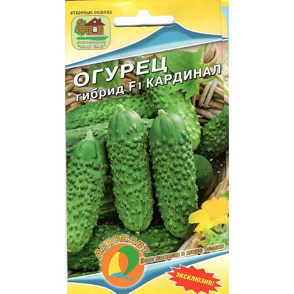 Скороспелый, партенокарпический гибрид. Завязь пучкового типа. От полных всходов до созревания 40-47 дней. Растение с ограниченным ростом боковых побегов, формировки не требуется, женского типа цветения. Главный стебель средней длинны, слаборазветвленный. Ценность сорта: стабильная урожайность, хорошие вкусовые и засолочные качества, отличаются хорошей лежкостью и транспортабельностью. Устойчив к корневым гнилям, настоящей и ложной мучнистой росе, оливковой пятнистости. Зеленец цилиндрический, бугорчатый, зеленого цвета, бурошипый. Длинна плода 10-12 см, масса 120 г. Вкус генетически без горечи. Рекомендован для выращивания под временными пленочными укрытиями и в открытом грунте. Прямой посев производится в прогретую почву, обычно в конце мая начале июня, глубина заделки семян не более 1,5-2 см. Плотность посадки в открытом грунте 4-5 растений, в теплицах 2-3 растения на 1 кв.м.