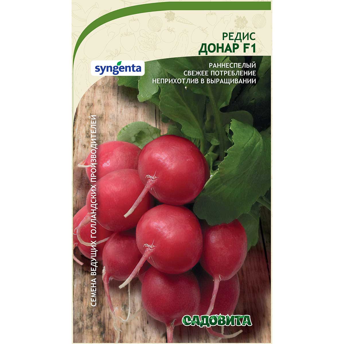 Для выращивания в теплицах, под укрытиями и в открытом грунте. Вегетационный период: 23-25 дней, красивые, яркого цвета, выровненные корнеплоды шаровидной формы, высокий урожай до 4кг/м2 в феврале - марте, пригоден для выращивания в условиях недостаточного освещения, не требует высоких температур при выращивании, короткий листовой аппарат, устойчив к пожелтению ботвы. Возможен посев в кассетах. Созревание (раннеспелость): Раннее Вегетативный срок, дней: 23-25 Грунт, способ выращивания: для выращивания в теплицах, под укрытиями и в открытом грунте. Возможен посев в кассетах. Назначение: реализация в свежем виде.