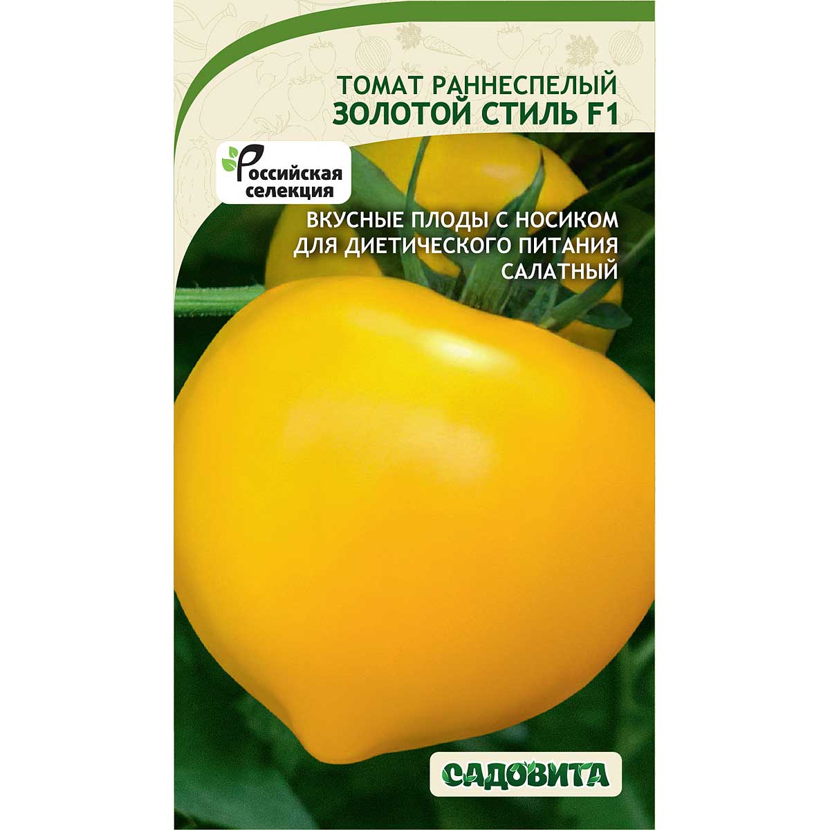 Раннеспелый гибрид томата индетерминантного типа. Срок созревания составляет 95-100 дней от всходов. Предназначен для открытого грунта и теплиц. Растение высокорослое (180-200 см), среднеоблиственное. Требуется подвязка. Плоды округлые с носиком, крупные, массой 250-280 гр. Окраска золотисто-оранжевая. Вкусовые качества отличные. Гибрид обладает высокой транспортабельностью и сохранностью плодов до месяца без потери вкуса и формы. Урожайность отличная – 19-22 кг с 1 кв.м. Салатное назначение.