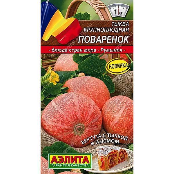 Порционный сорт тыквы раннего срока созревания. От всходов до уборки первых плодов 90-100 дней. Плоды маленькие, массой всего 0,7-1,0 кг, с толстой ярко-оранжевой мякотью. Кора розового цвета с красивым мраморным рисунком, хорошо чиститься. Вкус очень сладкий и сочный, содержание сухого вещества – 15-18%. Сорт столового назначения. Кулинарное применение очень разнообразно: запеканки, выпечка, супы, приготовление цукатов, ее запекают и жарят, а также получают прекрасного вкуса тыквенный сок. Урожайность – 3,5-4,0 кг/м2.