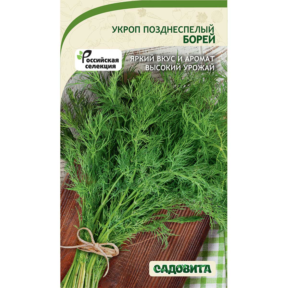 Позднеспелый сорт укропа. Период созревания на зелень составляет 39-63 дня. Растение высокорослое, 120-135 см. Листовая розетка полуприподнятая, хорошо облиственная. Листья крупные, зеленые с небольшим налетом. Сорт ценится за устойчивость к болезням, быстрое отрастание зелени и медленное стеблевание, что позволяет собрать несколько урожаев за сезон. Урожайность высокая – до 4 кг с 1 кв.м. Применение широкое – свежее употребление, сушка, использование в качестве приправы к любым