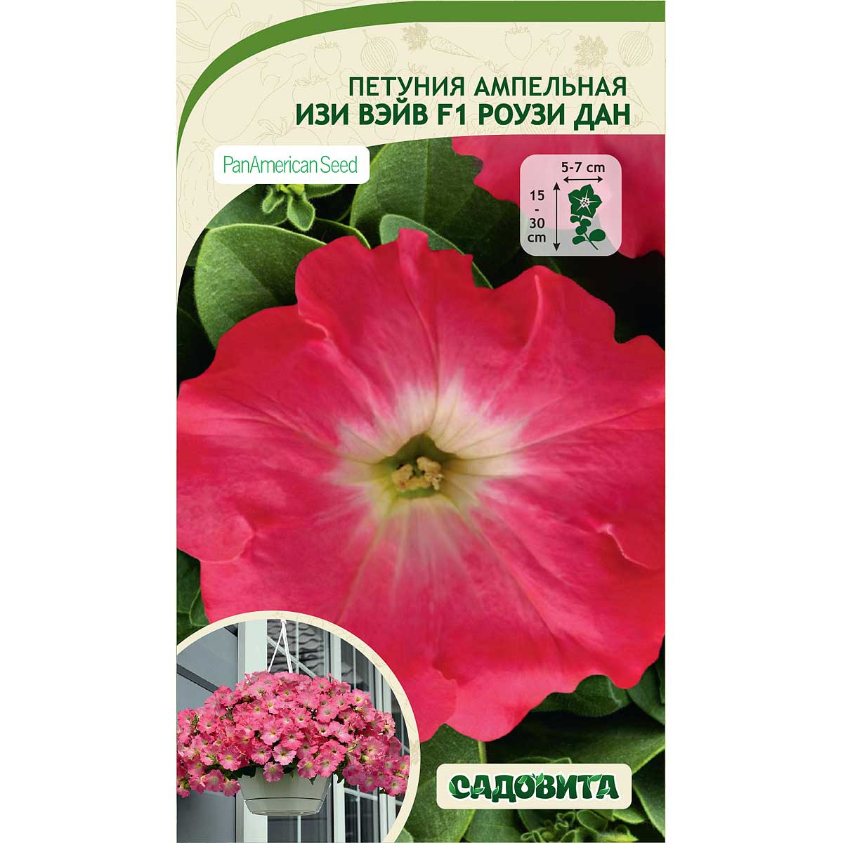 Эффектная ампельная петуния с продолжительным цветением. Растение быстрорастущее, высотой 15-30 см с выравненной плотной цветочной шапкой, за которой не видно листьев. Побеги длиной 80-100 см образуют ниспадающий каскад с множеством цветков. Цветок диаметром 5-7 см. Окраска нежно-розовая с белым центром . В уходе неприхотлива, обладает устойчивостью к непогоде, не полегает. Цветение раннее и продолжается до первых заморозков. Прекрасно подходит для подвесных кашпо, балконных ящиков.