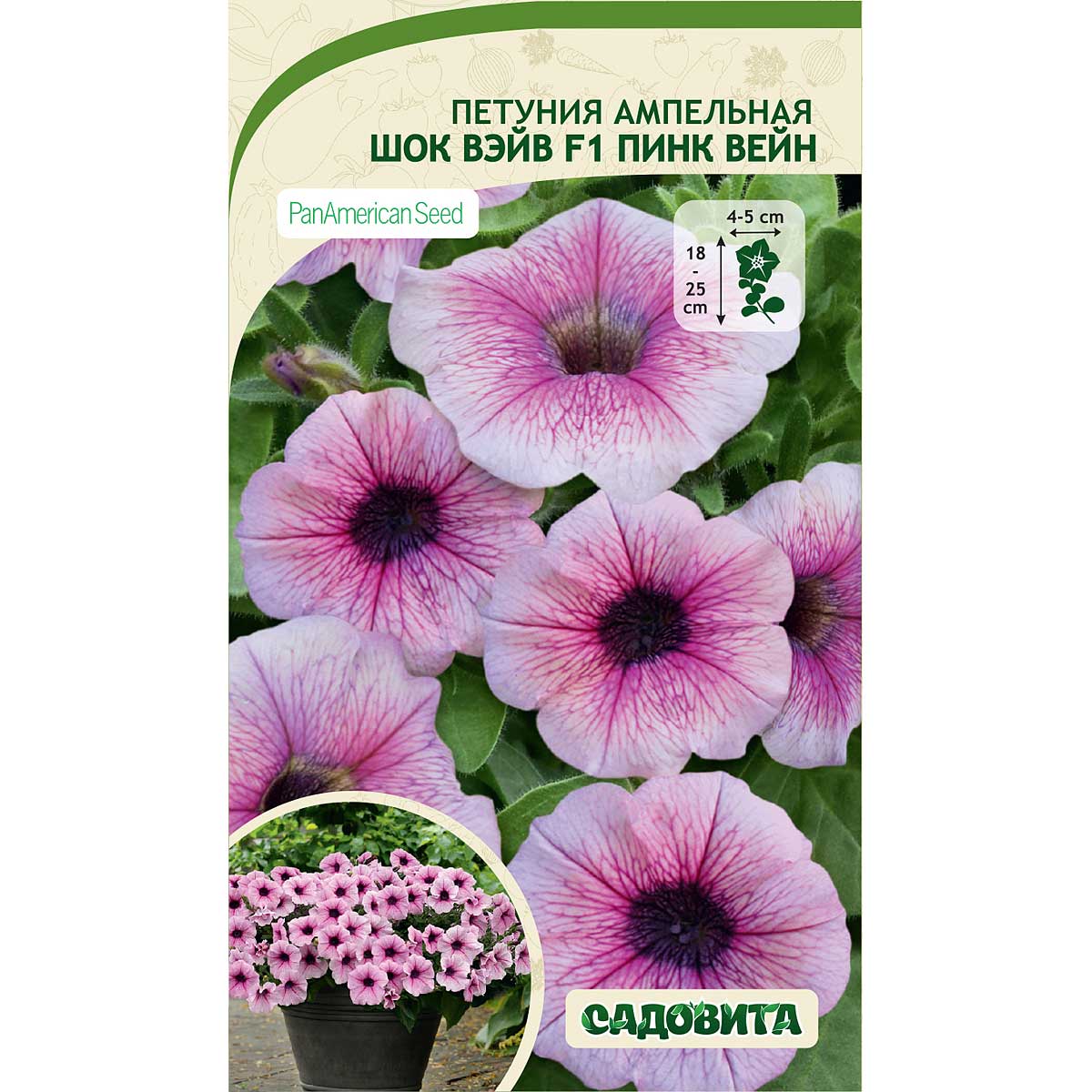Пышноцветущая ампельная петуния с многочисленными цветками и с говорящим названием «ударная волна». Растение энергичное, высотой 18-25 см с быстрорастущими крепкими побегами длиной 75-90 см. Цветок диаметром 4-5 см. Окраска нежно-розовая с темно-фиолетовым центром. Прекрасно подходит для подвесных кашпо, балконных ящиков и в качестве почвопокровного растения. Предпочитает кашпо объемом 10-20 л. В уходе неприхотлива, обладает устойчивостью к дождям и ветру: не полегает, а легко восстанавливается после непогоды. Цветение продолжительное, до первых заморозков.