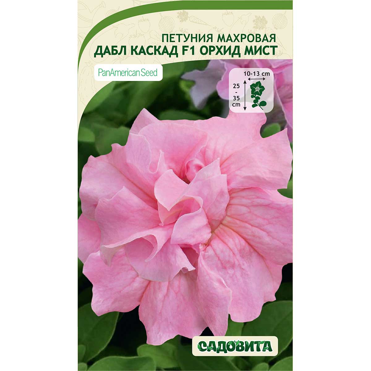 Компактная махровая петуния с ранним началом цветения. Растение высотой 25-35 см, хорошо ветвится.Цветок эффектный – очень крупный, густомахровый с гофрированным краем, диаметром 10-13 см. Окраска воздушная нежно-розовая будто облако, благодаря чему цветник наполняется особым шармом и заметен издалека. В уходе неприхотлива, устойчива к перепадам температур, цветет до заморозков. Прекрасно подходит для выращивания в кашпо, для оформления клумб и цветников.
