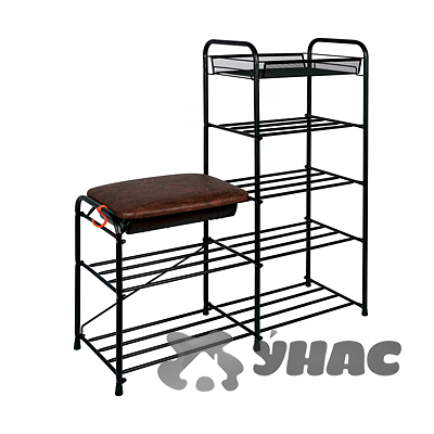 Подставка для обуви Альфа 35 сиденье + ящик черный (5-и полочная 90 см)