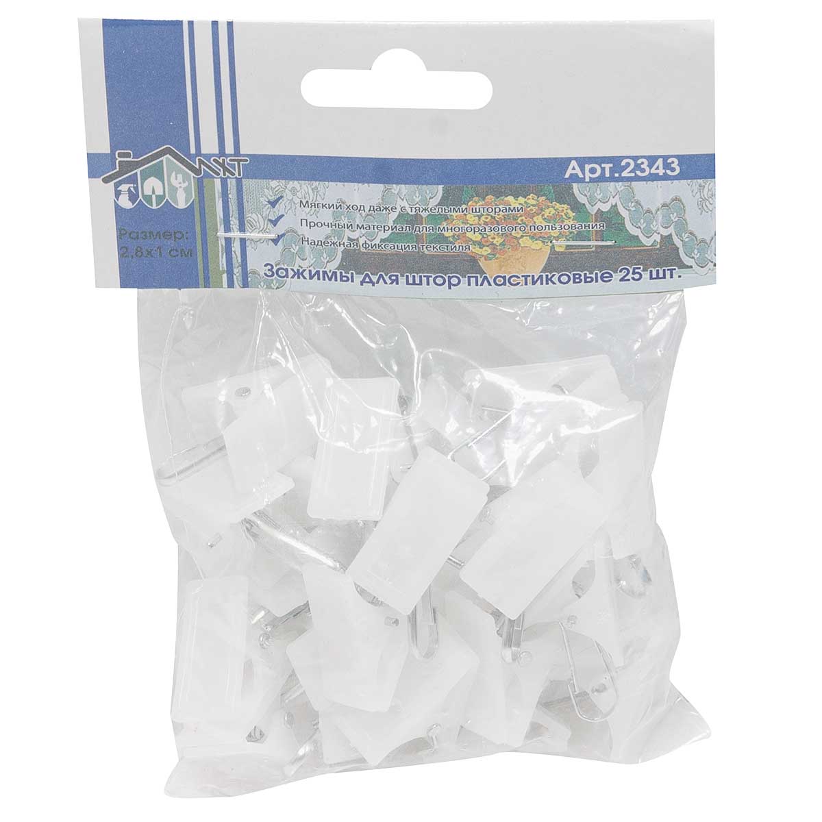 —Прищепки для штор пластик без кольца 2343 25 шт
