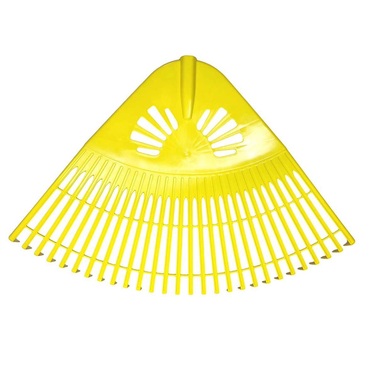Пластмассовые веерные грабли, изготовленные из высококачественного полипропилена, предназначены для уборки листьев, тонких веток, мусора с газона. Имеют 28 зубцов. Диаметр тулейки - 25мм, поставляются без черенка. Размер веера - 730*480мм.