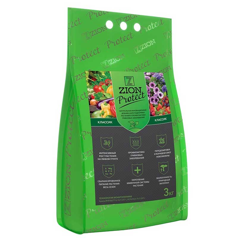Натуральная инновационная питательная добавка ЦИОН ПРОТЕКТ для подкормки растений обеспечивает их интенсивный рост, развитие сильной корневой системы, повышает урожайность зеленных, овощных и плодово-ягодных культур, сокращает сроки созревания урожая. Способствует длительному цветению садовых цветов. Препятствует развитию грибковой микрофлоры в грунте. ЦИОН ПРОТЕКТ может использоваться в течение всего садового сезона в виде корректирующих добавок к почвам любого состава, в том числе к обеднённым и деградированным грунтам, пескам, истощенным разбалансированным почвам и др.