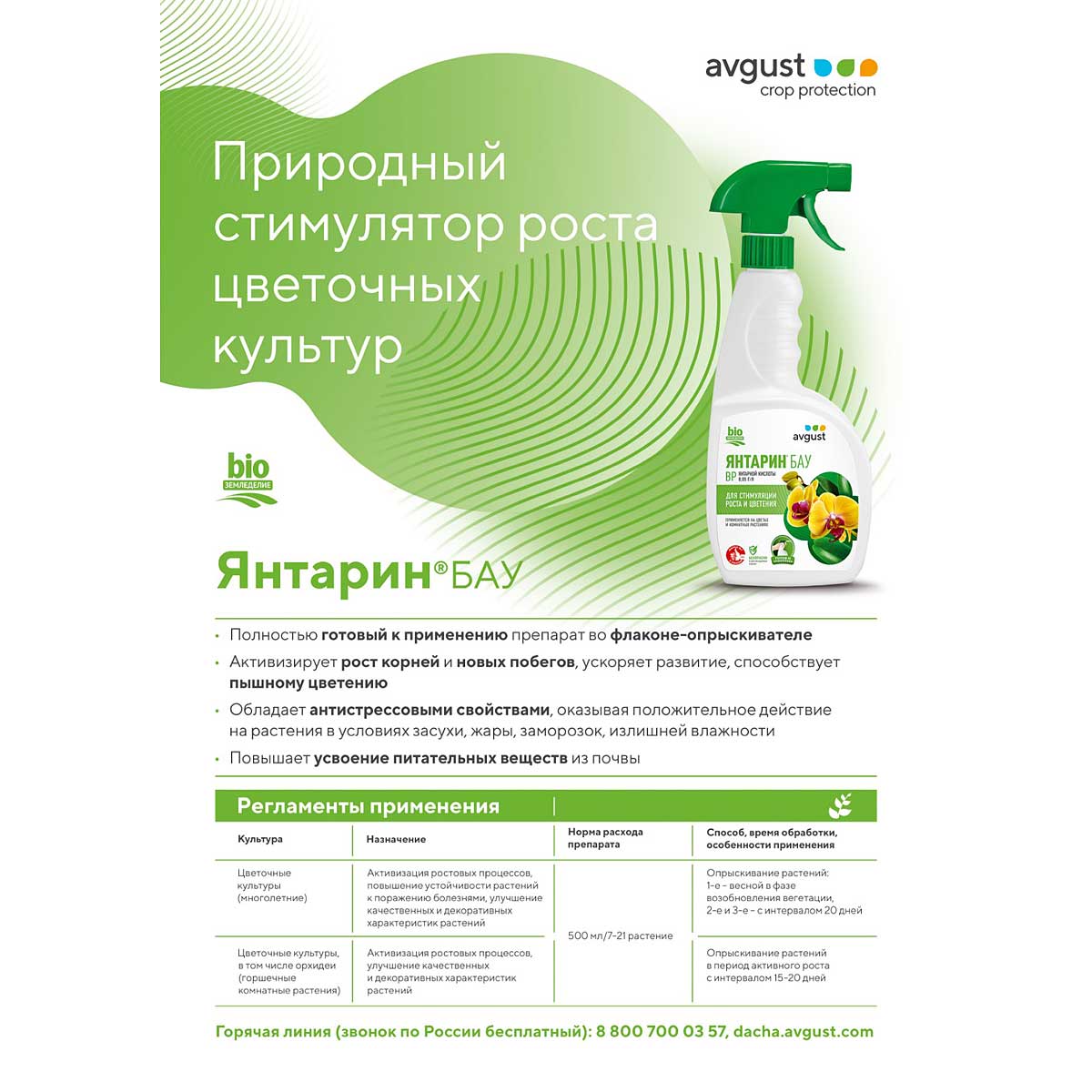 Готовый к применению природный стимулятор роста цветочных культур. Препарат активизирует рост растений, ускоряет развитие, способствует пышному цветению, обладает антистрессовыми свойствами, оказывая положительное действие на растения в условиях засухи, жары, заморозок, излишней влажности. Янтарин удобен в использовании – при обработке растений просто поверните колпачок-распылитель.